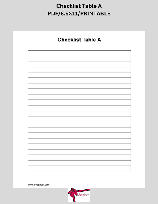 Blank Checklist Table Set of 3-Printable PDF